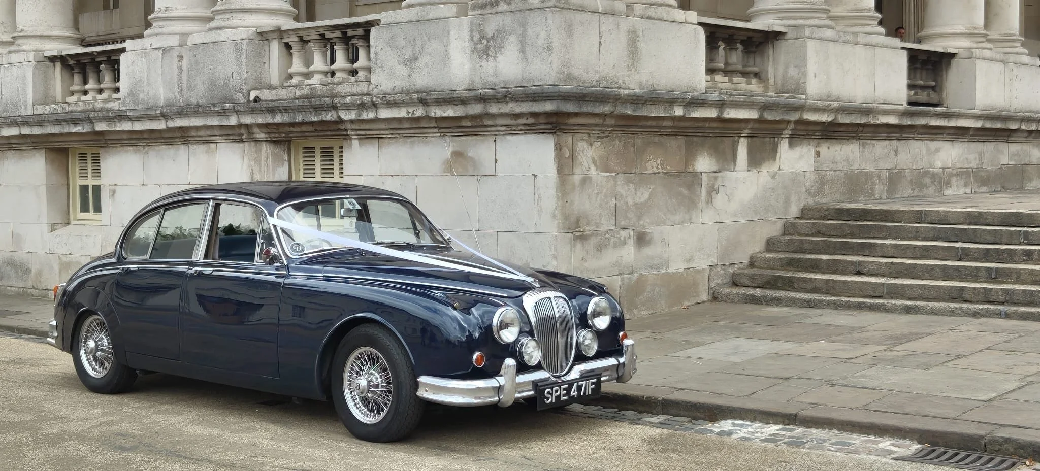 Choosing our Daimler V8 Silver Blue means you’re not just hiring a car, you're embracing a piece of British motoring history. The iconic shape, made famous by the television series Inspector Morse, exudes a timeless elegance that transports you back to the chic sophistication of the 1960s. Its turbine-smooth performance, coupled with a luxurious leather and burr walnut interior, ensures a serene journey and provides a stunning backdrop for your wedding photographs.
